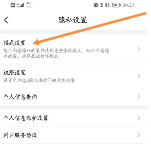 进入手机的QQ输入法软件,点击上面的设置图标,点击上面的隐私设置选项,点击模式设置,最后点击开启基础打字模式即可。