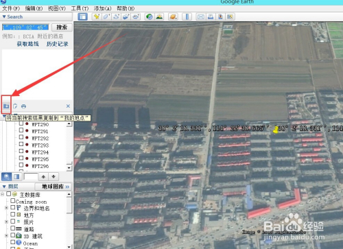 如果找不到你的地标;就点:将当前搜索结果复制到“我的地点”,如下图,然后再双击我的地点,就能追踪到自己的目标地点。
