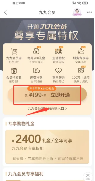 步骤一;打开国美软件,进入我的,点击【九九会员】选项 。