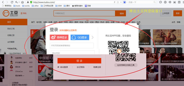 1、打开浏览器,在地址栏输入土豆网地址(http://www.tudou.com/),点击【登陆】;