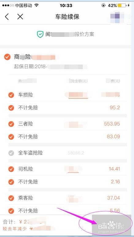 PS:小编去年也是通过这个APP交的车险,所以系统就默认显示去年的方案,可以自己按新的需求调整方案。