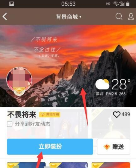 5.可进行背景预览,点击【立即装扮】即可使用该背景。