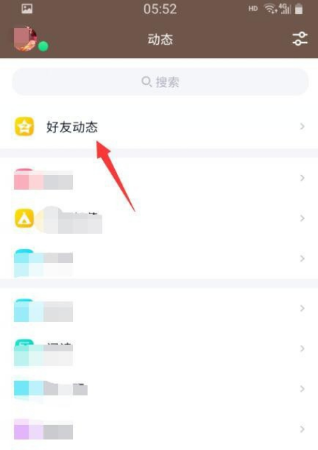 1.打开手机桌面,进入手机QQ并登陆账户切换界面至【动态】。