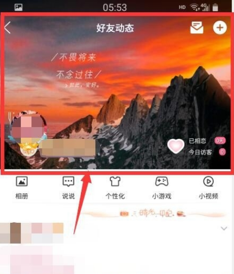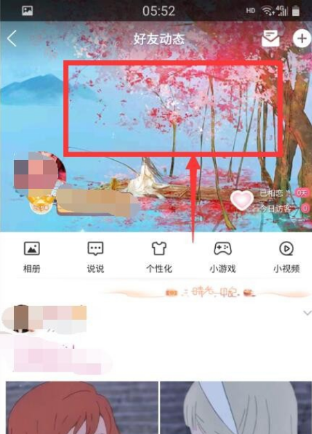 6.回到好友动态界面,即可看到装扮好的空间背景图片。