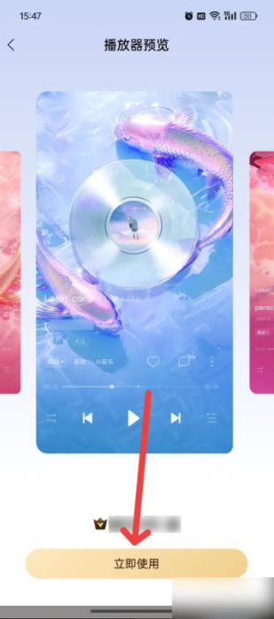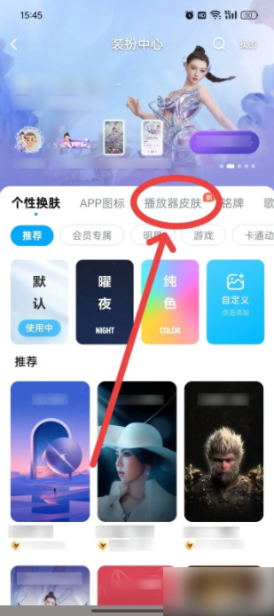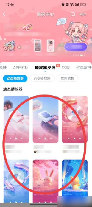 进入我的页面;点击右上角【衣服】图标,进入装扮中心;选择【播放器皮肤】,在动态播放器列表中;选择喜欢的【样式】,点击【立即使用】即可。