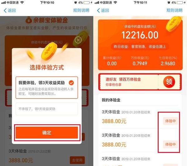 体验金收益=余额宝体验金本金总额×每日万份收益/10000