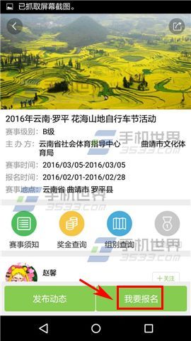 1)打开野途,点击打开要报名的比赛,然后点击右下方的【我要报名】;(如下图)