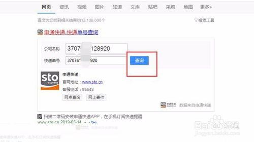 打开一个浏览器,输入“申通快递”,单击“百度一下”