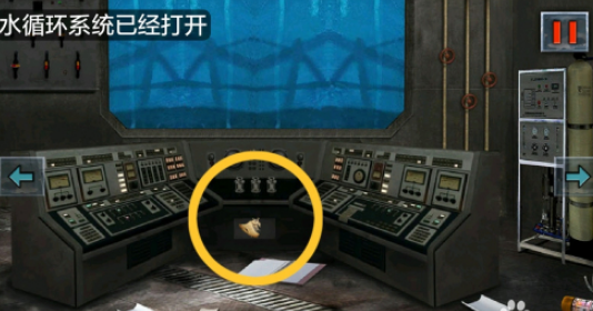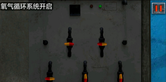 在水循环和氧气控制室里还有一个阀门,这些阀门有5个可以转动的按钮,上面两个,下面三个。按钮颜色一半为红,一半为黄,而我们在场景中也可以找到颜色一半为红,一半为黄的灭火器。这就意味着灭火器的放置方式即为开关的转动方法。正确转动按钮后可以开启氧气循环系统。当水循环和氧气循环系统都被打开后,控制台下面会出现地图碎片,注意拾取。