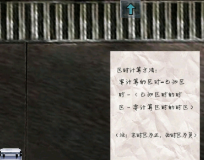 末日公寓内部有四个场景,在超级智能电脑BOX场景中地上我们可以看到一张纸,纸上写着区时的计算方法。来到打印机场景,在这个场景中可以发现一张世界地图,点击地图可以看到提示“12小时制,它能指明下一条路(中-日-英-澳-美)”。这时手机上显示的是15:00,根据区时的计算方法依次算出日、英、澳、美此时的时间并换算成12小时制就可以得到密码34752。