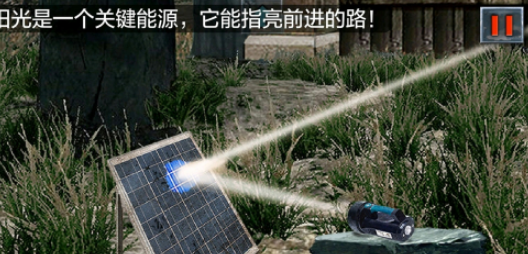 末日公寓大门前可以拾取的道具有左下角的[照射灯],中间尸骨堆里的[小铲子],右边杂草里的[刷子]和[一张房卡],另外在大门左边还有下个场景需要用到的[打火机]。拾取到这些物品后,先用[刷子]把太阳能电池板刷干净,然后把[照射灯]放在石头上。