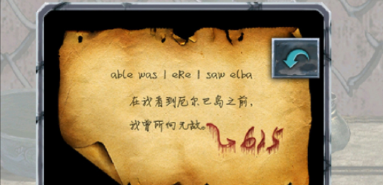 武器库中的墙壁上红色的英文句子提示用户“这句话指明了前进的路”,意味着这句话就是打开食品供给屋的门的密码。而刚才用户拾取到的[一张写着able was I eRe Isaw elba的纸]上有625这样类似密码的数字,仔细观察这一句英文发现其中的R是大写的,而R两边的字母完全对称。如果用数字代表这句话,那这串数字也应该是对称的。把625改成对称的形式有几种,尝试之后发现密码是62526。