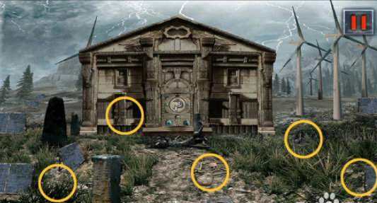 然后在场景左下角拾取到[断线钳]和[石头],用[断线钳]剪短电网上连接牌子的铁丝得到一把钥匙。使用钥匙就可以进入末日公寓大门前了。