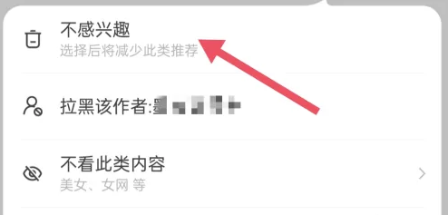 如果以后想减少这种类型的内容,可点击上方的“不感兴趣”即可