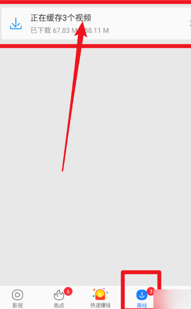 4、把视频添加到离线列表后,退出观看视频,点击底部的离线,点击正在缓存的视频。