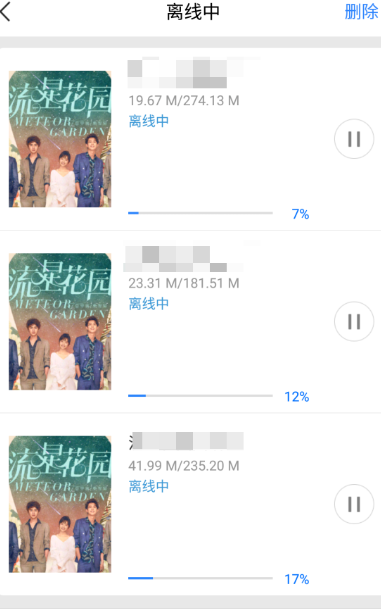 5、进入离线中,就可以看到正在离线缓存的视频了。