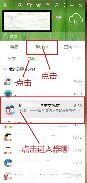 第一步,电脑点开QQ软件,在QQ主界面依次点击“联系人”-“群聊”,然后点开想要直播的QQ群,进入群聊界面。