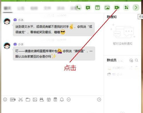第二步,在群聊界面把鼠标移动至右上角的三点水“..."图标处,此时自动弹出几个图标。