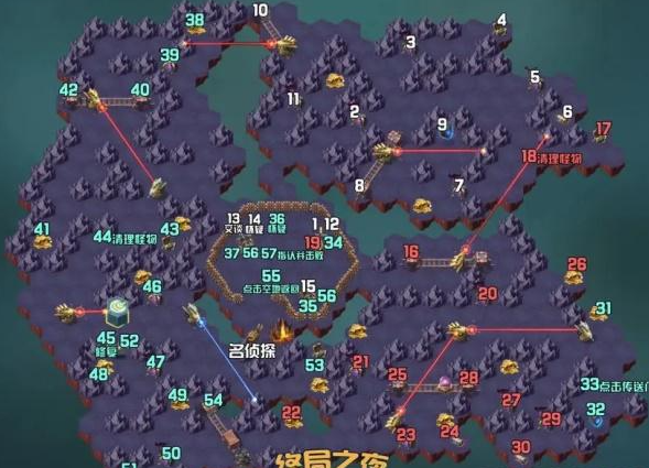1.剑与远征终局之夜打法路线如下,玩家们可以对应数字顺序一个一个点击过去。
