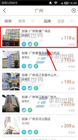 1)打开掌上如家,进入首页后,选择好需要入住的城市以及日期,点击【马上预订】,搜索结果出来后,点击其中一家【酒店】。(如下图)