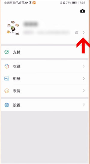 2 升级之后打开微信app,进入微信首页之后点击我选项,这时点击微信头像旁的三角图标,