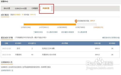 我们可以发现功能还是比较合理人性化的。点击最后一个其他设置按钮。 出现成长概况、