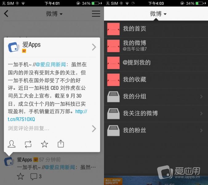 微博:来自新浪微博的文章分为两部分,上半部分是微博内的链接或详细内容,而下半部分是关注者的内容,选择下方的五角星和评论按钮,可以直接收藏或评论这条微博。