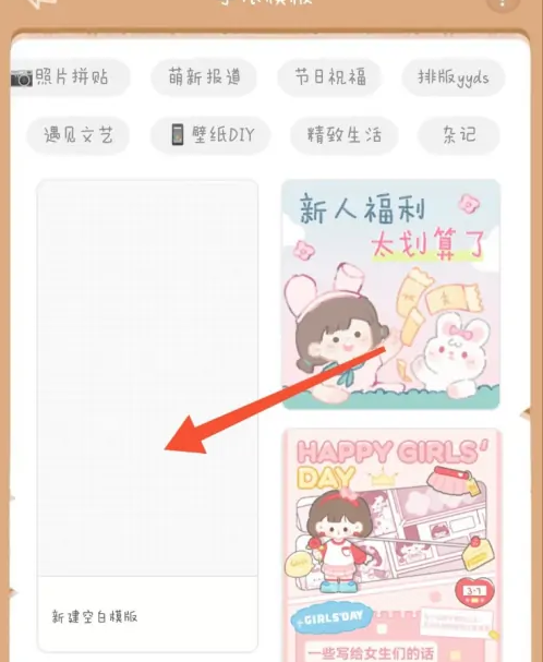 点击制作手帐,如下图,点击新建空白模板,自制小麻薯手帐贴纸,这样就可以制作手帐贴纸