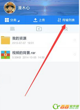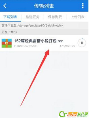 4、然后,我们点击进入传输列表里查看文件下载情况。