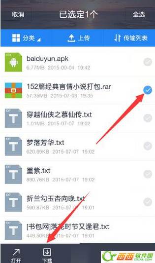3、接下来,我们在需要解压的文件后点击选中,并点击下方下载。