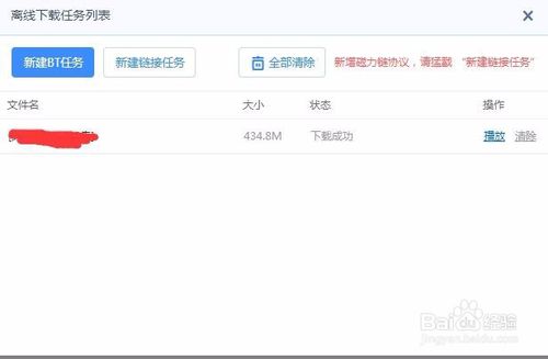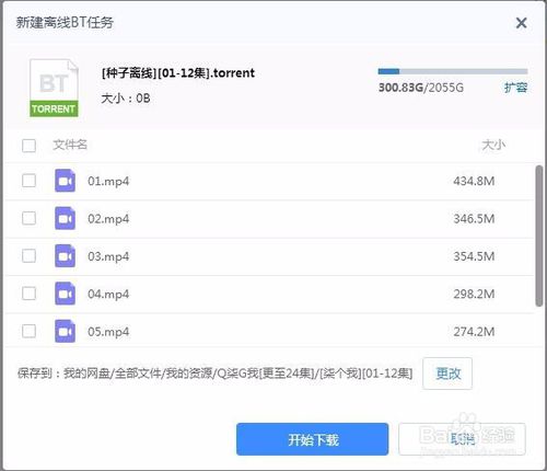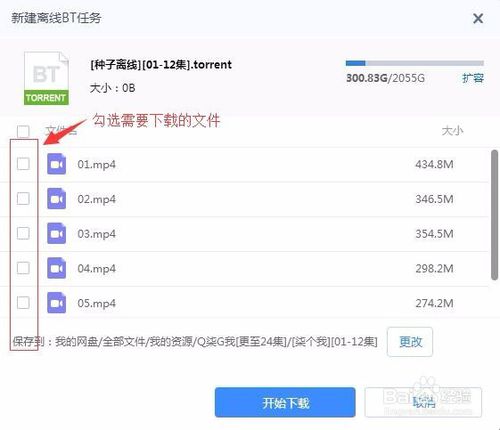 2.将鼠标移动到种子文件名上,然后点击鼠标左键,然后会弹出一个新建BT任务的窗口