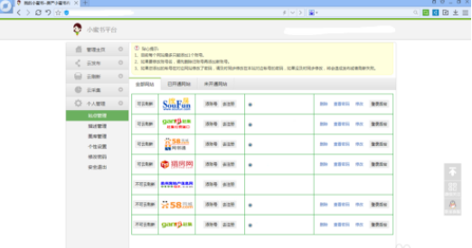 在主界面中或左侧点击:个人管理>站点管理>点击进入>进入后有添加账号,将你注册好的帐号添加进去即可.