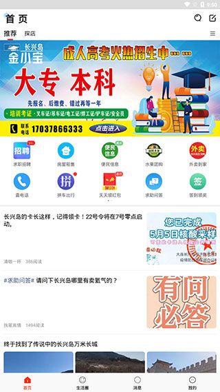 1、在长兴岛生活网app中可以阅读长兴岛的各种新闻资讯,你可以了解到各方面的信息。