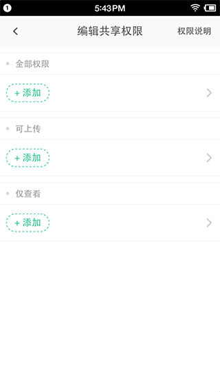 ②进入编辑共享文件夹权限页面,我们为您提供了3种权限。点击右上角的"说明"可查看具体权限说明。如图所示: