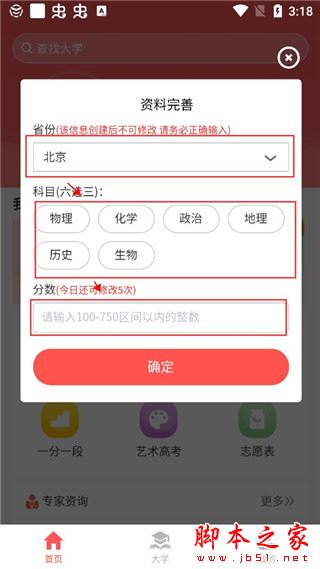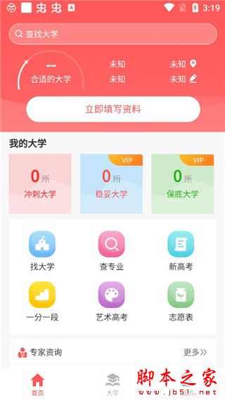 3、在软件的主页面有:找大学、查专业、一分一段等;