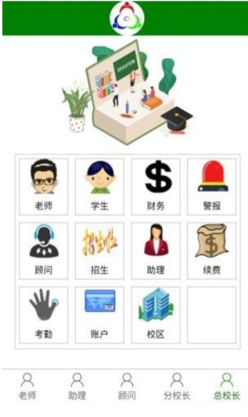5、总校长统筹管理多样的版块,包括账户、考勤、小区以及顾问等多个版块;