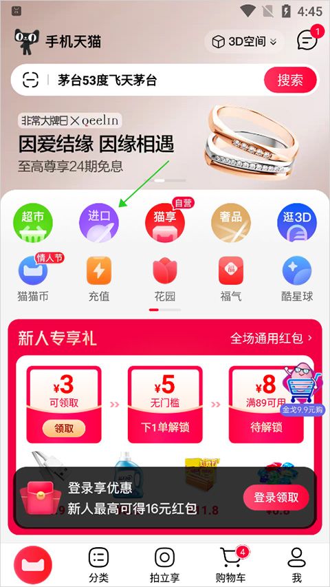 天猫国际app叫手机天猫app,用户可以通过在手机天猫app首页中点击进口