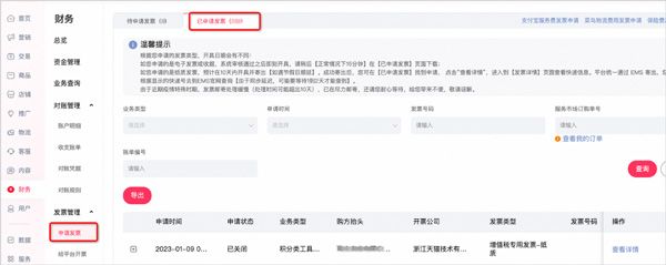 发票提交后的10天内会安排发票邮寄,后期您可以进入千牛新版-财务-发票管理-申请发票-已申请发票查询邮寄发票的运单号。