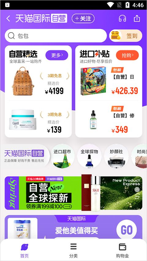也可以进行海外产品的购物,并提供免税优惠