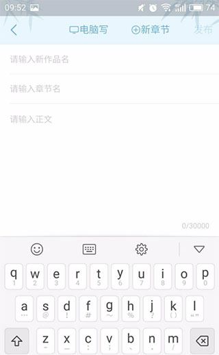 5、点击新写一本,可以看到作品名、章节、文章正文。