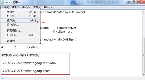 然后可以使用记事本或者文本编辑器打开系统hosts文件,上面有介绍文件地址在哪,然后在文件里输入以下文字,并保存: