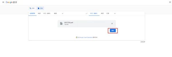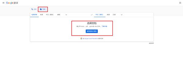 打开谷歌翻译在线工具之后,进入的是文本翻译界面,翻译文的话直接点击文档按钮,就可以进入文档翻译界面了。