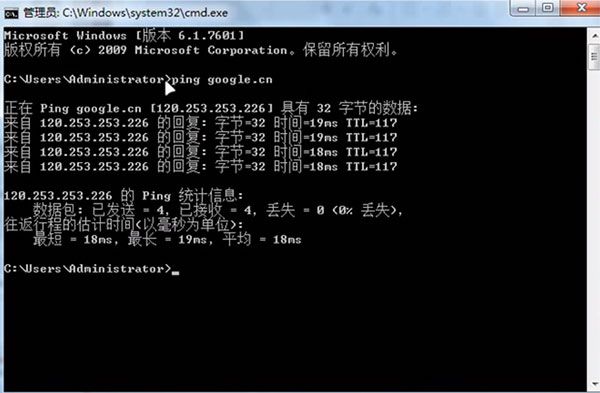 然后在弹出的窗口输入ping google.cn