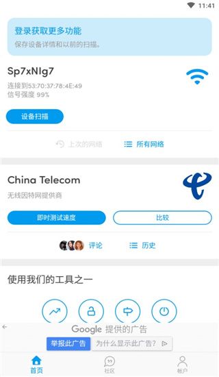 FING网络扫描是一款功能强的网络安全扫描工具,主要能够帮助用户对自家wifi进行连接的设备查看、网速测试、帮助排除问题,让你更快的了解你的网络是否安全,除此之外,fing中文版操作使用简单,采用先进的设备识别技术,可以识别数十亿个设备,以使用有限的输入数据来揭示品牌,型号和类别,获取IP地址、MAC地址、设备名称、型号、供应商和制造商的最准确设备识别,保障自己家中的网络安全,防止蹭网,防止网络被破解等。与此同时,fing 网络扫描仪还提供了专业的网络扫描功能,包括端口扫描、设备ping、traceroute、DNS查找和LAN唤醒,检查下WiFi速度测试、下载速度、上传速度等多方面的分析和延迟,让你随时随地轻松掌握wifi状态,从此上网不再卡顿。