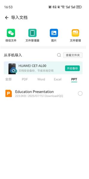 2、开启文件获取权限即可自动设备你设备中下载的文档(支持从微信中导入)
