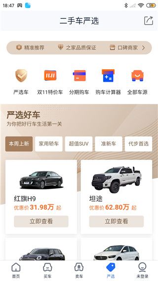 4、打开严选界面,网站为您严选好车。