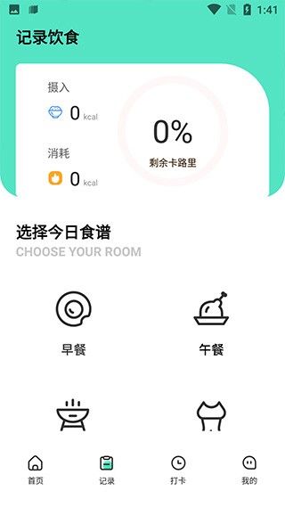 3、在"记录"页面,用户能够记录自己的每日饮食,记录自己的卡路里摄入量与消耗量。