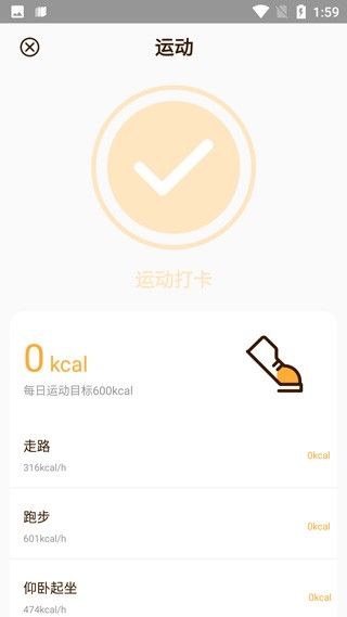 2、点击每日打卡板块中的"运动",用户就可设定一个每日运动目标,完成目标就可进行打卡。