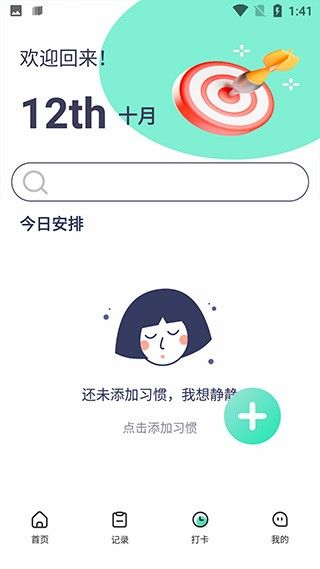 4、用户还可在"打卡"页面中新增各种习惯打卡目标,督促自己坚持打卡,养成好习惯。