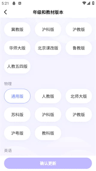 4、然后选择教材,点击自己使用的教材,不如点击通用版;
